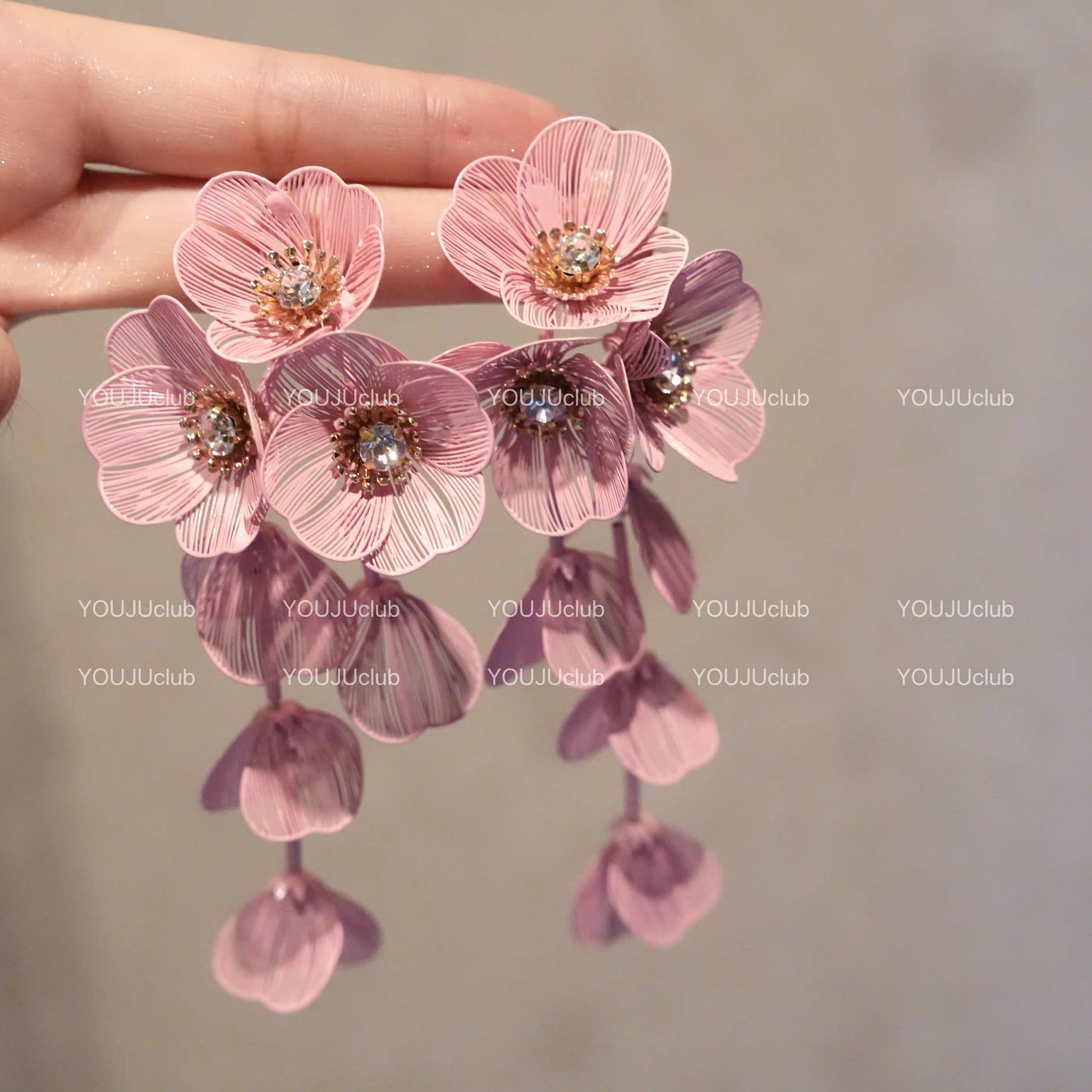 🌺 Exaggerated Big Flower Long Tassel Earrings – Bold, Beautiful, Unapologetic